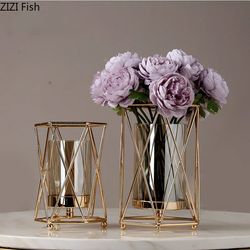 Kreative Nordic Metall Eisen Geometrische Glas Gold Vase Wohnzimmer Dekoration Blume Anordnung Moderne Dekoration Vasen Vasen Aliexpress