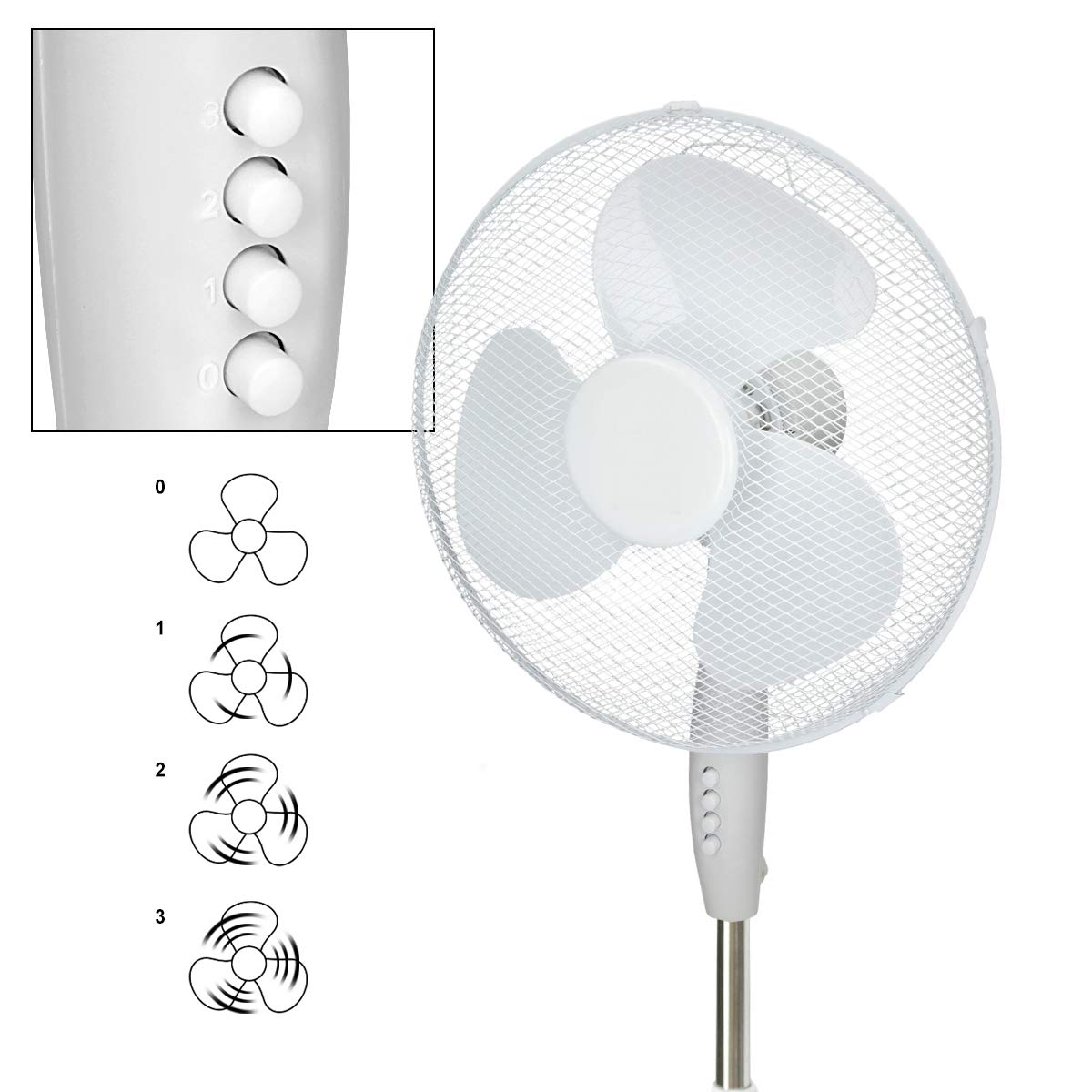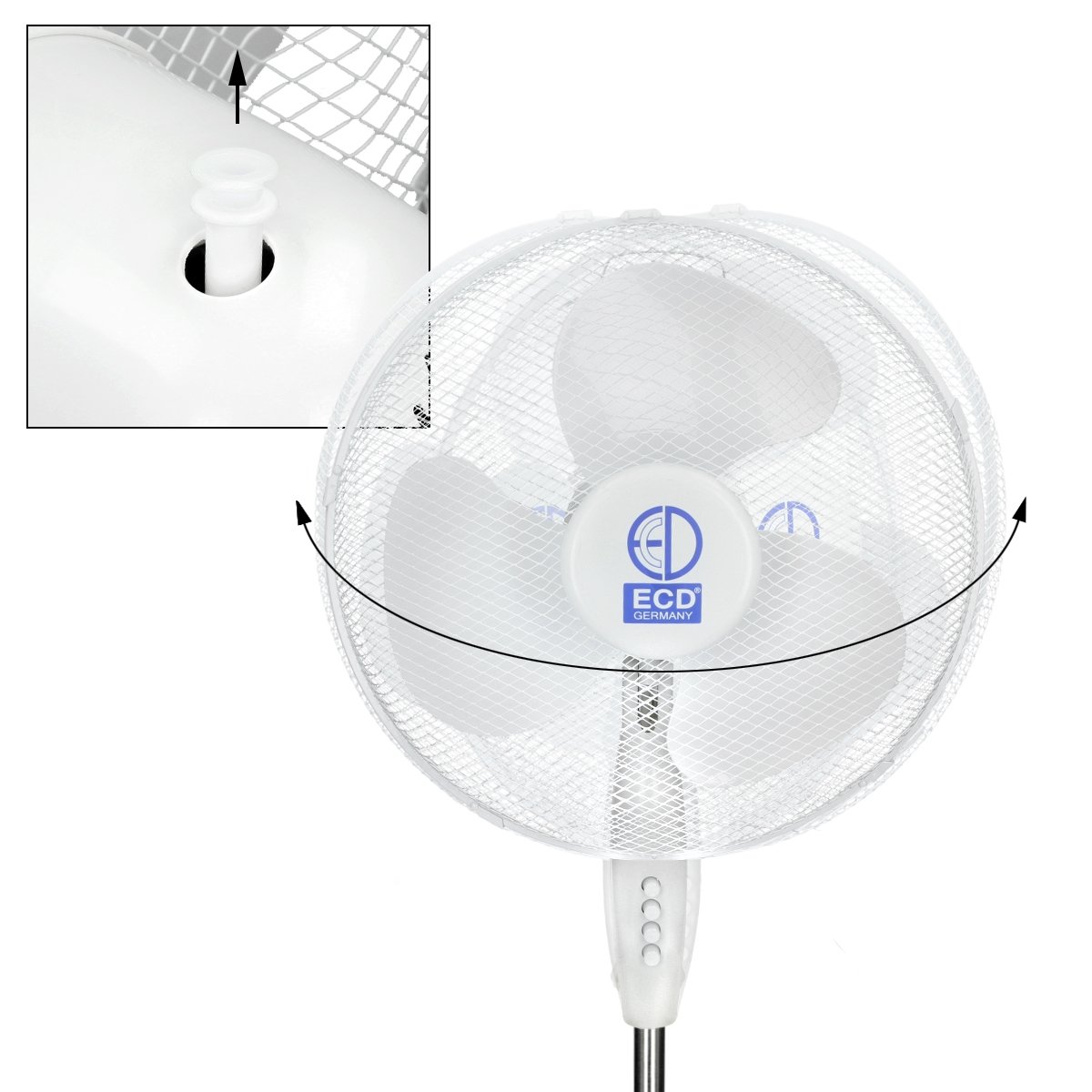 Ecd Germany Standventilator 45w Mit Standfuss O 43 Cm Weiss Mit 3 Laufgeschwindigkeiten Und Schwenkfunktion Zimmerventilator Ventilator Luftkuhle Luftung Hohenverstellbar 105 120 Cm Ventilatoren Heizen Kuhlen