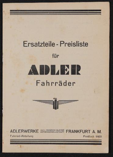 Adler 3 Gang Ersatzteil Preisliste 1939 Velopedia