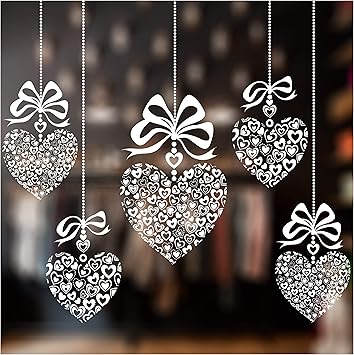 Amazon De Stickers4 Valentinstagsdekoration Fensterdekoration Set Mit 5 Hangenden Herzen Und