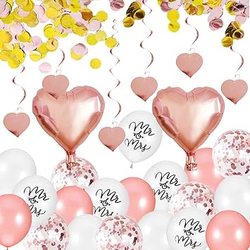 Happyhours Hochzeitsdeko Rosegold Luftballons Mr Mrs Helium Latexballons Konfetti Herz Folienballon Herz Hangende Spirale Girlande Hochzeit Tisch Deko Amazon De Spielzeug