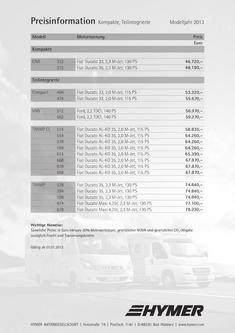 Ersatzteile Fur Fenster In Hymer Car Preisliste 2013 Deutsch Fur Osterreich Von Hymer Aktiengesellschaft
