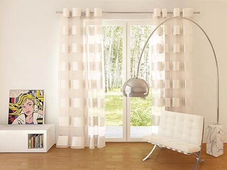Amazon De Decoking 140x245 Cm Creme Ecru Vorhang Fensterdekoration Gardine Osenschal Streifen